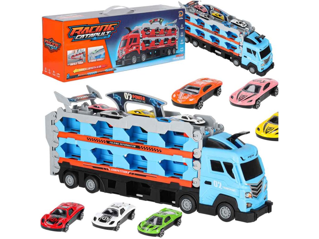 Ko je tovornjak razgrnjen, se spremeni v impresivno 210 cm dolgo dirkalno stezo, ki ponuja veliko prostora za vznemirljive dirke z več vozili. Otroci si lahko zgradijo svojo stezo in uživajo v tekmovanju, kadar koli se jim zahoče.