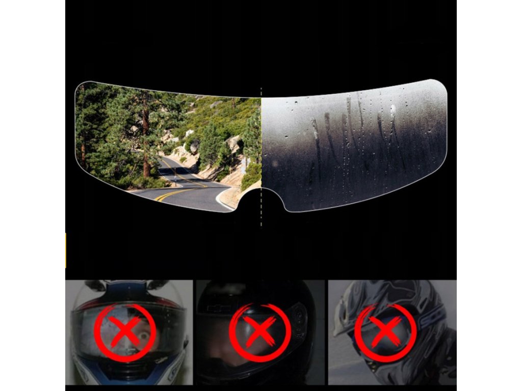 Ni pomembno, ali dežuje ali je megla – komplet nalepk proti rosenju in dežju vam bo v pomoč. Posebna površina nalepk je zasnovana tako, da voda takoj odteče in ne ovira pogleda. Tudi med močnim dežjem ostane pogled skozi čelado jasen in prozoren. Ta komplet je zato izjemen pomočnik za vožnjo v vsakem vremenu.