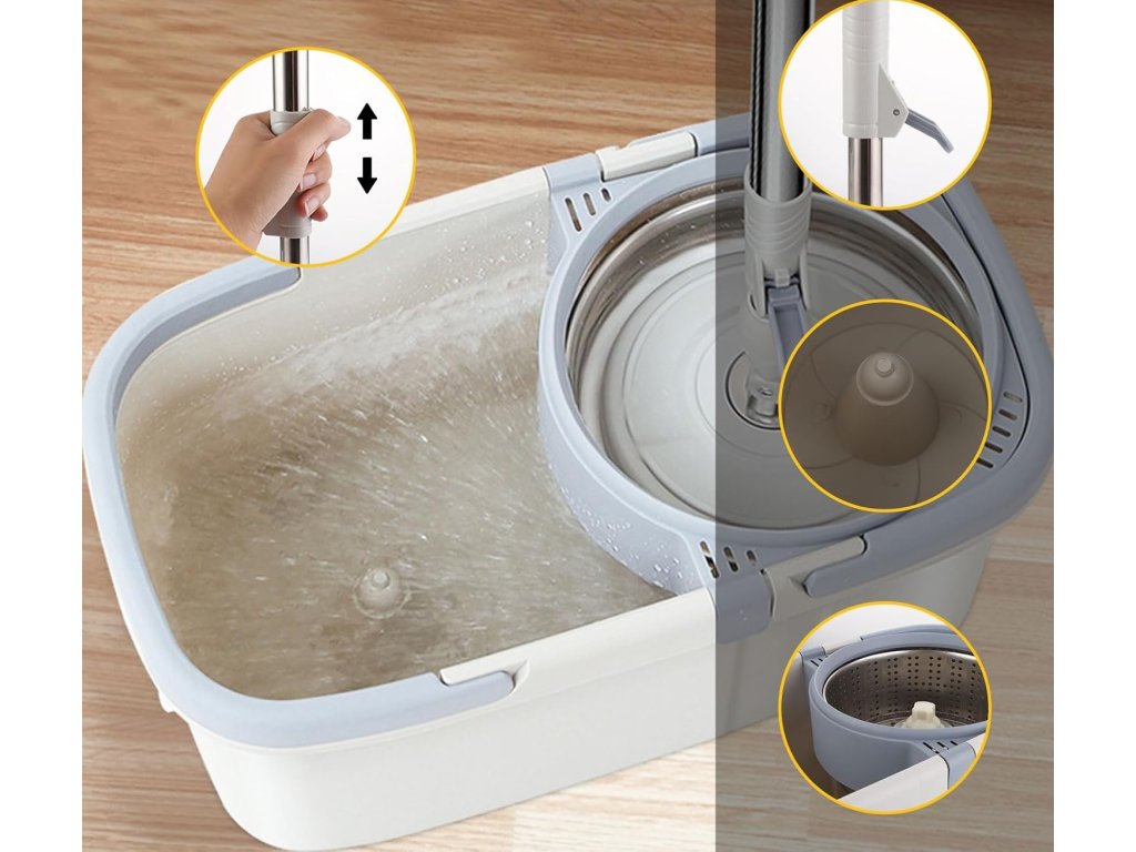Iščete zanesljivega pomočnika za vsakodnevno čiščenje? Odličen rotacijski mop z dodatki bo zagotovil čistočo brez napora, prihranil vam bo čas in energijo, zahvaljujoč praktičnemu sistemu ožemanja pa ne bo stika z umazano vodo.