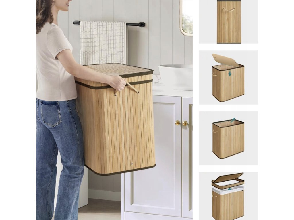 Izjemna košara za perilo iz bambusa ponuja prefinjene podrobnosti, ki jih bo cenil vsak uporabnik: