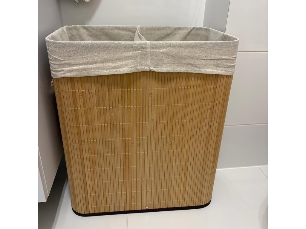Kljub svoji velikosti bambusova košara za perilo ohranja eleganten videz in ne zavzema nepotrebnega prostora. Je popolna kombinacija funkcionalnosti in estetike.