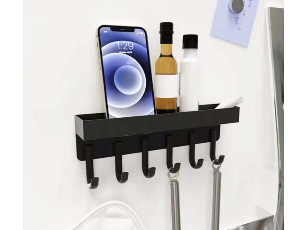 Poleg 6 trdnih kavljev ta elegantni obešalnik za plašče ponuja tudi polico za shranjevanje z varnimi robovi, visokimi 2,3 cm. Idealen je za shranjevanje denarnic, telefonov, očal ali majhnih okrasnih predmetov. Zahvaljujoč stabilnosti in visokokakovostni izdelavi ni nevarnosti prevračanja ali preobremenitve. Je idealna rešitev za vsakodnevne potrebe in vzdrževanje reda.