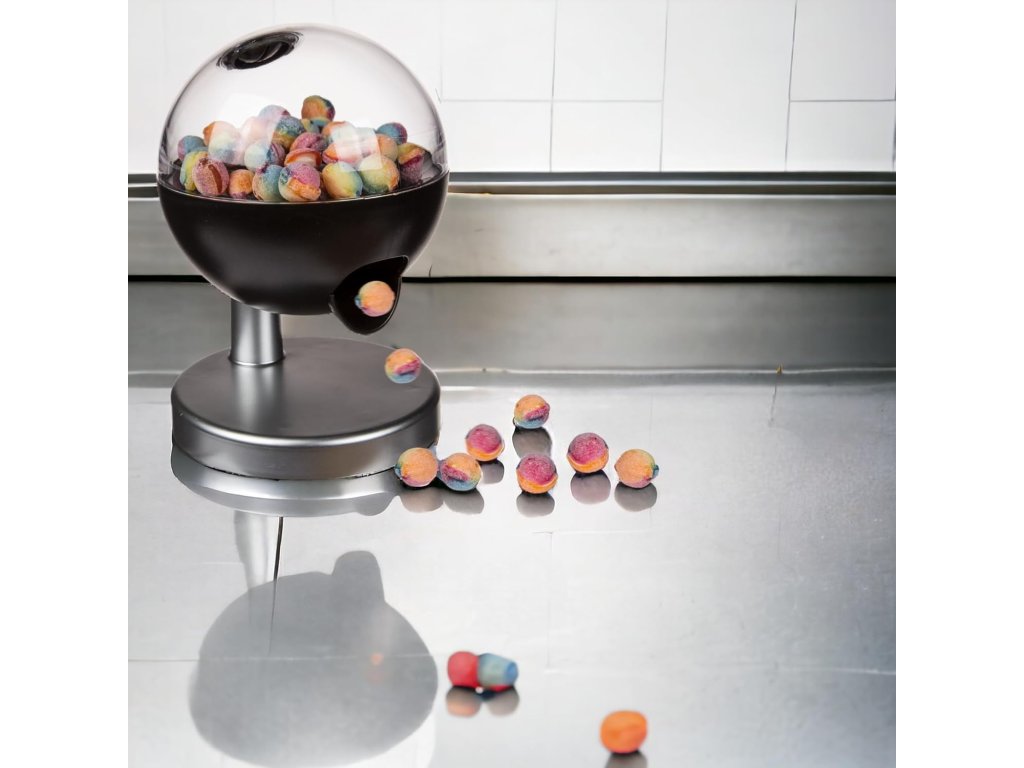 Profesionalni mini dozator sladkarij vas bo navdušil s svojo preprostostjo. Upravlja ga lahko celo majhen otrok – vklopite ga z enim gumbom in uporaba je popolnoma avtomatizirana. Notranjost dozatorja je dostopna in zasnovana tako, da jo je enostavno čistiti in vzdrževati v higienskem stanju.