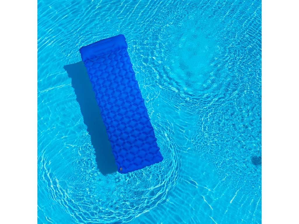 Podpora za glavo in vrat sta bistvenega pomena za udoben spanec. Napihljiva spalna podloga je zato opremljena tudi z ergonomsko oblikovano blazino, ki bo poskrbela, da se boste vedno zbudili sveži in spočiti.