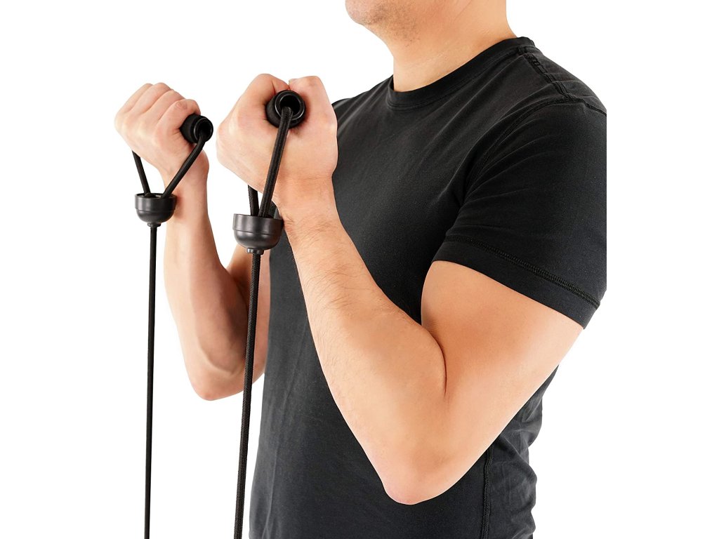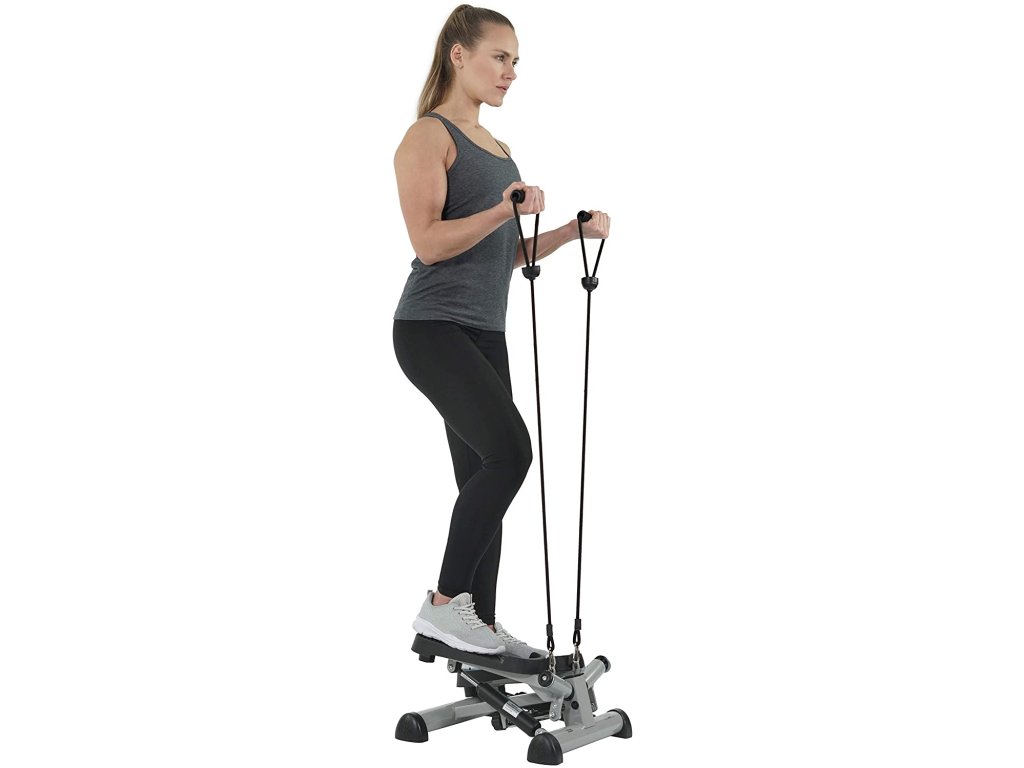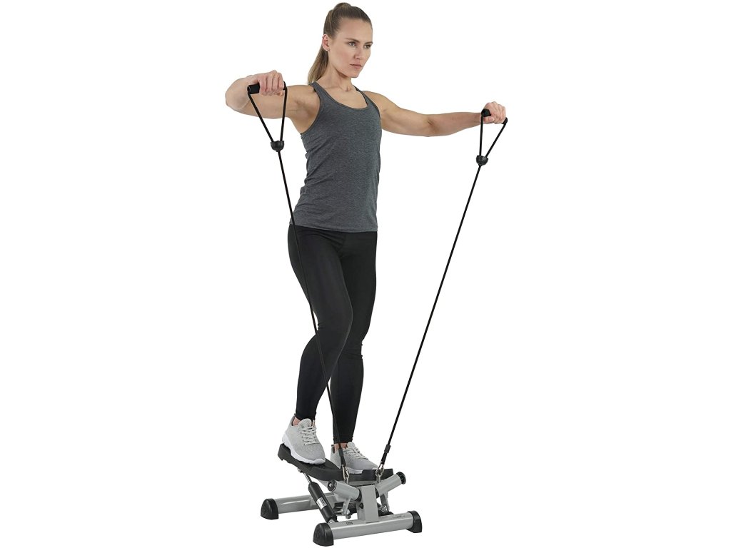 Če na steper pritrdite vrvi z ročaji, lahko hkrati vadite tudi roke. Celoten vadbeni set tako zagotavlja krepitev mišic nog, rok in celotnega telesa s kombiniranjem stoječih vaj in s tem aktiviranjem mišic drugih delov telesa.