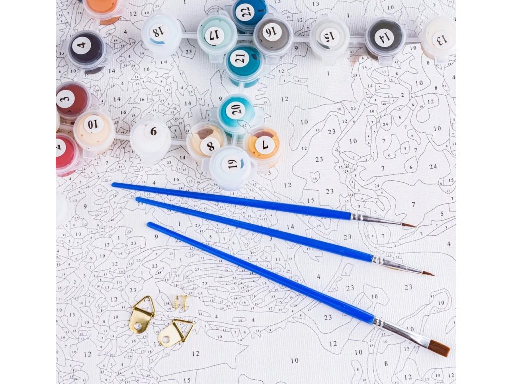 Navdihujoč komplet za slikanje po številkah vključuje celoten komplet visokokakovostnih akrilnih barv, posebej izbranih za vsako sliko. Barve so žive in obstojne, kar zagotavlja dolgotrajno lepoto vašega dela. Priloženi so tudi čopiči različnih debelin, ki vam omogočajo natančno in podrobno slikanje.