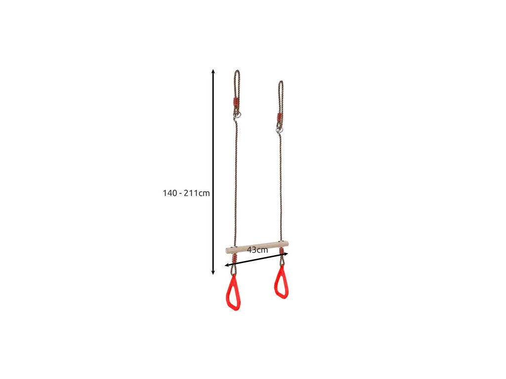 Trapezna gugalnica z gimnastičnimi obroči je opremljena s posebnimi vrvmi, ki vas bodo poleg svoje trdnosti presenetile tudi z možnostjo nastavitve dolžine. Gugalnico lahko tako obesite na višino, ki ustreza vašim otrokom.