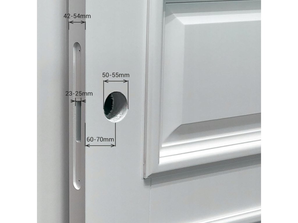 Univerzalna ključavnica z ročajem in bralnikom prstnih odtisov je zasnovana za hitro in enostavno namestitev na leva in desna vrata. Komplet vsebuje vse, kar potrebujete za namestitev, vključno z izvijačem, cilindrom ključavnice in navodili. Le nekaj korakov in varen dostop je pripravljen.
