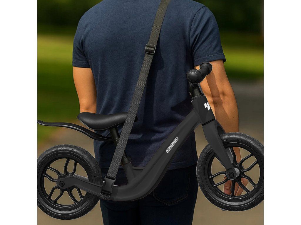 To praktično otroško poganjalo z naramnim pasom bo cenil vsak starš, ki mu je med sprehodi mar za udobje. Pas je priložen, ga je enostavno pritrditi in omogoča brezskrben transport poganjala, ko se mali kolesar odloči za odmor. Zahvaljujoč največji dolžini pasu 160 cm ga lahko popolnoma prilagodite.