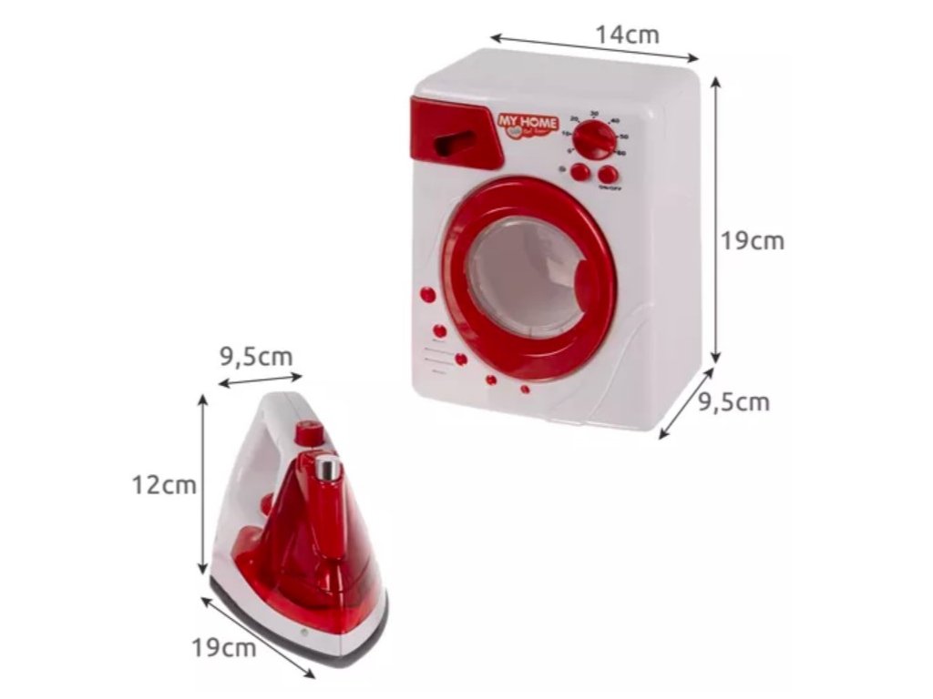 Spoznajte edinstven komplet otroških gospodinjskih aparatov, zahvaljujoč kateremu bo vaš otrok odkril skrivnosti vsakodnevnih obveznosti odraslih. Poleg pralnega stroja, likalnika in sesalnika so v kompletu še majhni obešalniki in polistirenske kroglice za sesalnik.
