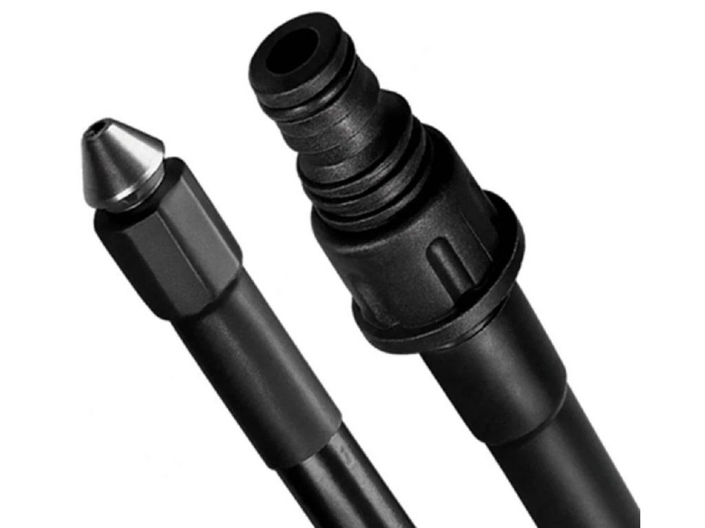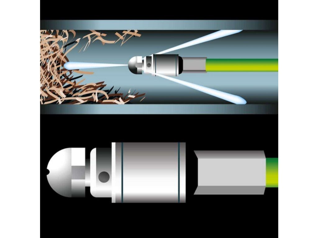 Cev za čiščenje cevi ni kar navadna cev. Opremljena je s posebno šobo, ki usmerja vodni curek točno tja, kamor ga potrebujete. Na ta način lahko prebije obloge v ceveh, s katerimi se ne morejo spopasti niti kemikalije.