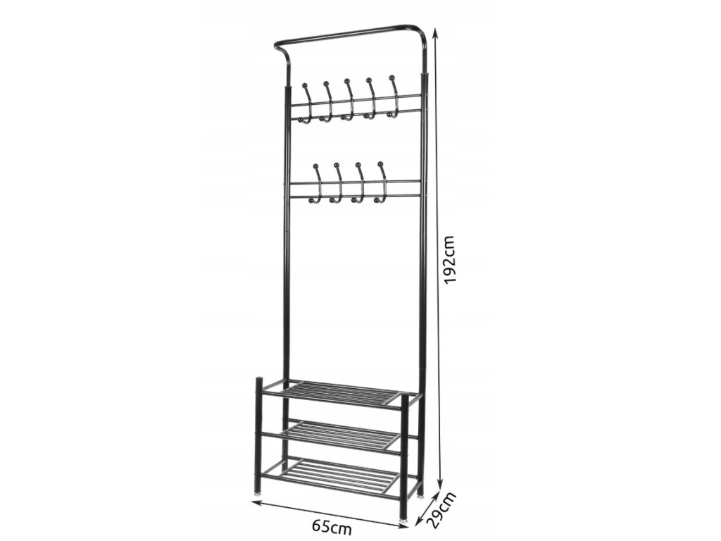 Visokokakovostna kovinska konstrukcija stojala za oblačila in čevlje je zasnovana tako, da prenese vsakodnevno uporabo brez ogrožanja stabilnosti. Ohišje stojala je izdelano iz trdne železne cevi, kar zagotavlja dolgo življenjsko dobo in vzdržljivost tudi pri intenzivni uporabi. Vsi elementi se natančno prilegajo, kar odpravlja tveganje zibanja ali neželenega premikanja.