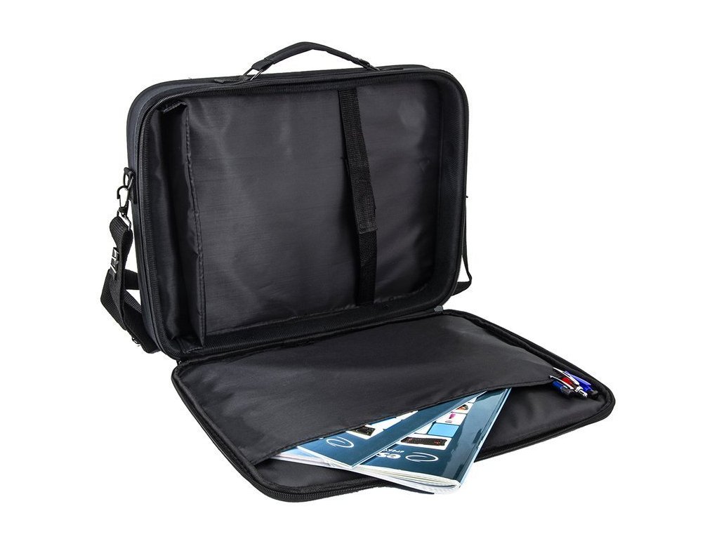 Praktična torba za prenosnik je posebej zasnovana za naprave z največjo diagonalo 15,6". Natančne dimenzije predala (39,0 x 29,0 x 4,6 cm) zagotavljajo varno shranjevanje različnih modelov prenosnikov.