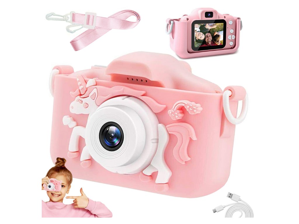 Edinstvena, sodobna in praktična zasnova otroškega digitalnega fotoaparata je kot nalašč za majhne roke malega fotografa. Priložena je vrvica za nošenje. Najbolj primeren za otroke, stare od 3 do 8 let.