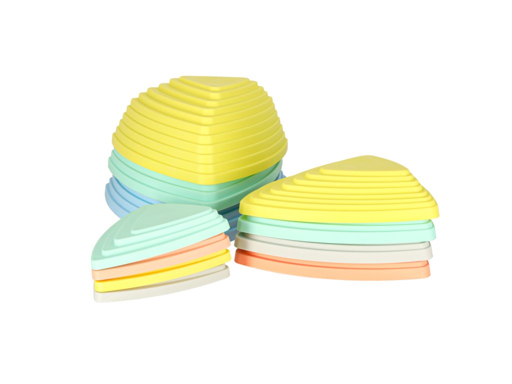 Ta edinstven komplet rečnih kamnov je zasnovan z mislijo tako na estetiko kot na funkcionalnost. Mehki pastelni odtenki ustvarjajo harmonično okolje in imajo pomirjujoč učinek. To otrokom omogoča, da se brez motenj osredotočijo na igro, hkrati pa razvijajo svojo vizualno zaznavo.
