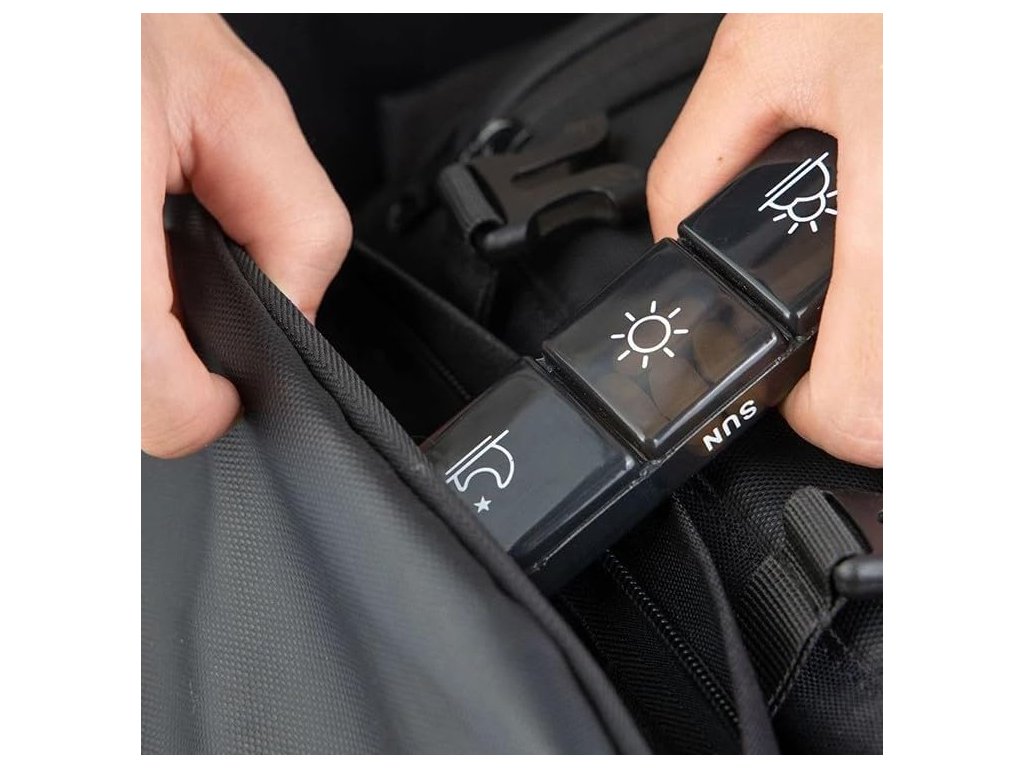 Vsak dnevni vložek je razdeljen na tri ločene prekatce, ki so namenjeni jutranjemu, kosilu in večernemu odmerku. Simbolične oznake olajšajo orientacijo in zagotavljajo pravilen čas uporabe. Zapiranje prekatov s klikom zagotavlja njihovo trdno zapiranje in hkrati ščiti zdravilo pred vlago ali kontaminacijo.