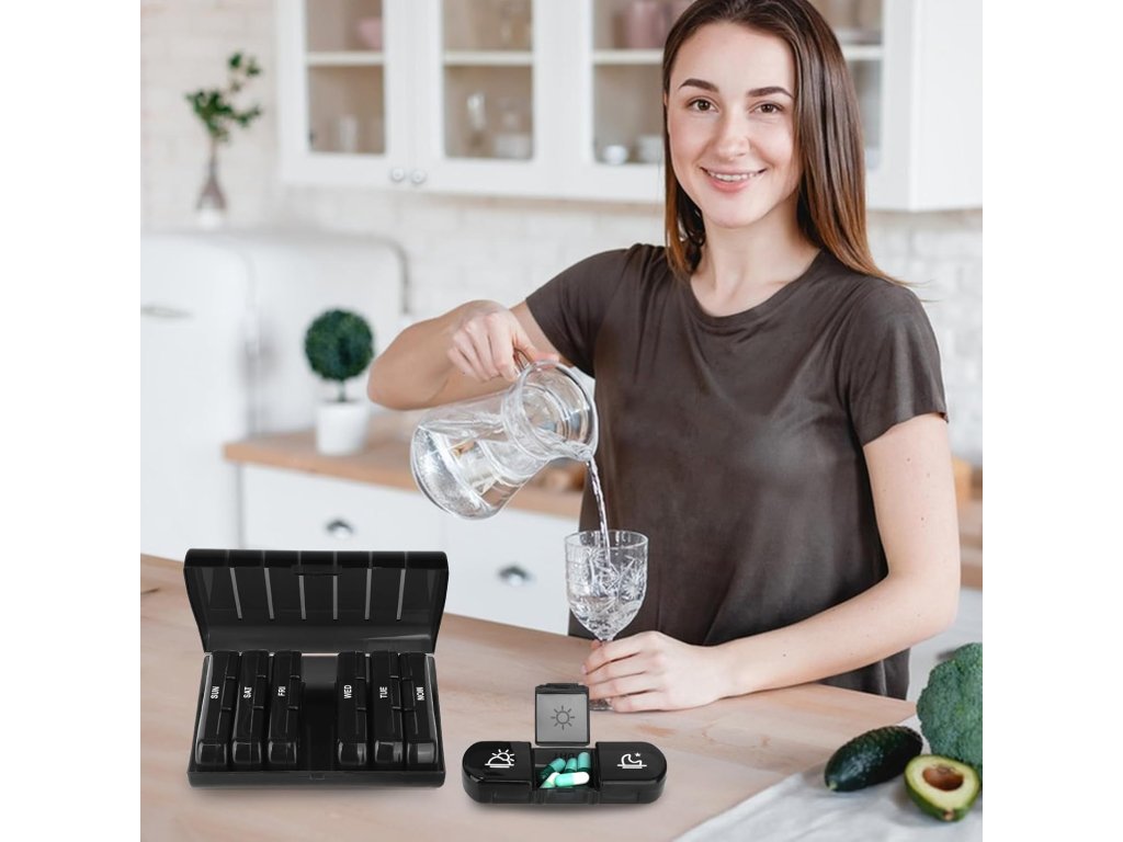 Ne glede na to, ali vam jemljete redna zdravila ali vitamine, vam bo neverjetni organizator za zdravila 7/3 pomagal pri njihovem rednem jemanju. Primeren je za vse starosti – starejše, odrasle in študente, ki jim je mar za njihovo zdravje.