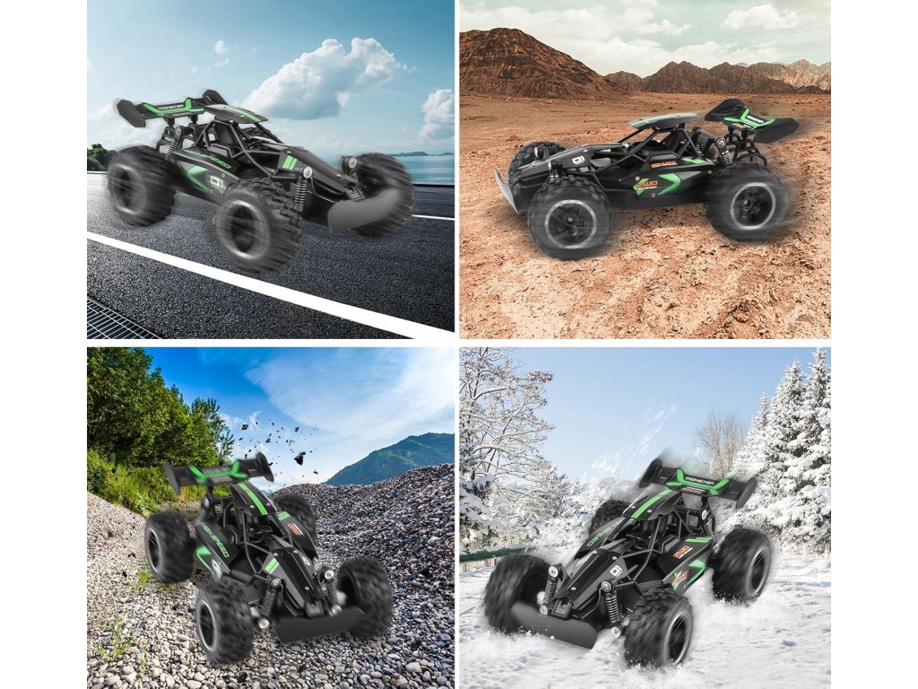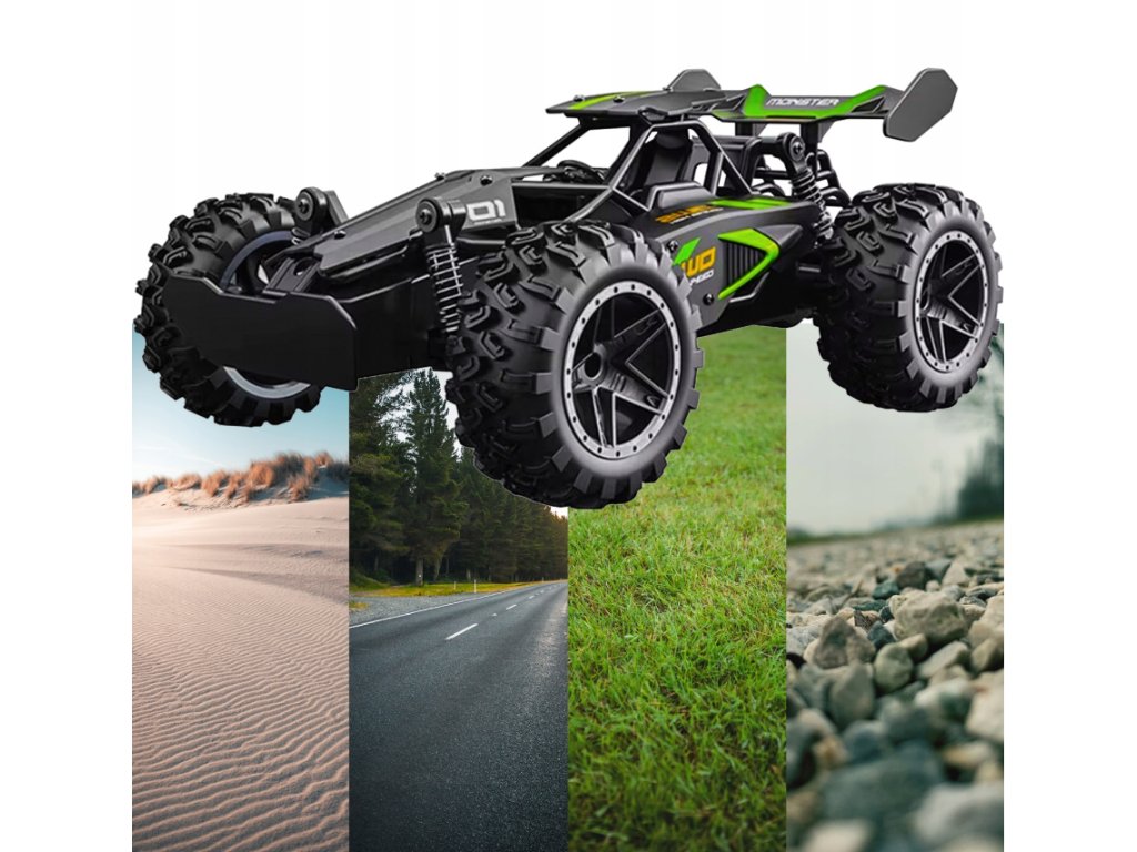 Ne glede na to, ali nameravate voziti avtomobilček po travi, pesku, gramozu ali asfaltu, bo ta praktični terenski avtomobilček na daljinsko upravljanje kos vsemu. Zmogljiv motor, velika gumijasta kolesa z odličnim oprijemom in fleksibilna konstrukcija omogočajo nemoteno gibanje po različnih površinah.