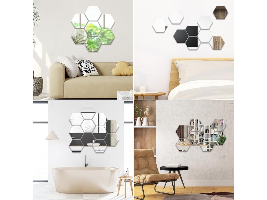 Iščete spremembo, ki bo vaši notranjosti dodala pridih okusa in modernosti? Včasih je dovolj že malo. Te stenske nalepke z ogledali v obliki šesterokotnika so lahko idealna rešitev za vas.