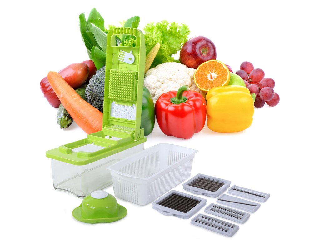 Hitro, zdravo in preprosto kuhanje je sanje vsakega gospodinjstva. S praktičnim ročnim večnamenskim rezalnikom s posodo bo vaše delo v kuhinji zdaj lažje in prijetnejše. S to napravo boste zlahka na kocke ali trakove narezali katero koli sadje, zelenjavo, kuhano jajce ali sir ali naribali zelje za solato.