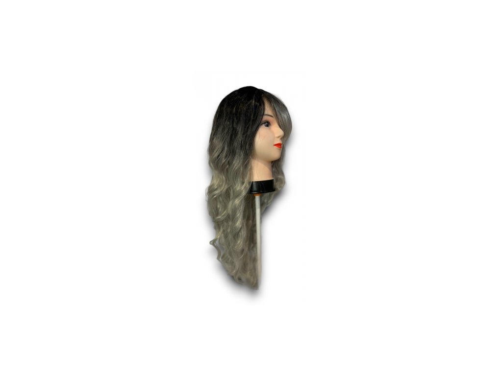 Visokokakovostna ženska lasulja - črno-siva 70 cm