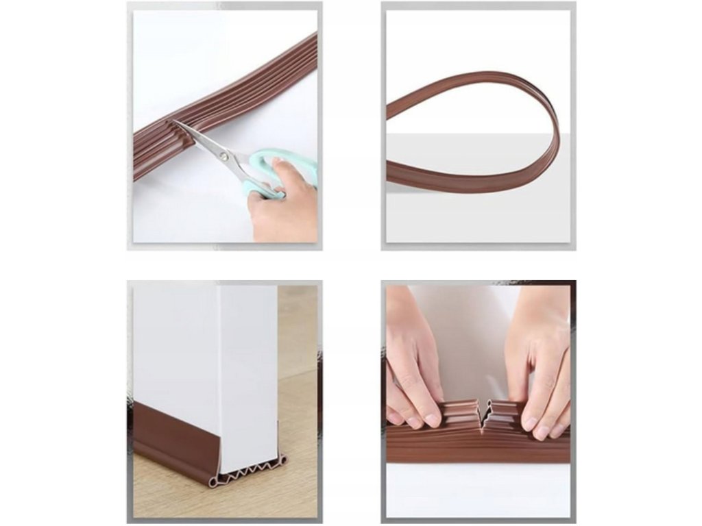 To tesnilo ima edinstveno lastnost – preprosto ga lahko odrežete na želeno dolžino in ga potisnete pod vrata. Zagotavlja vam popoln tesnilni učinek in hkrati udobje, če ga boste morali odstraniti z vrat.