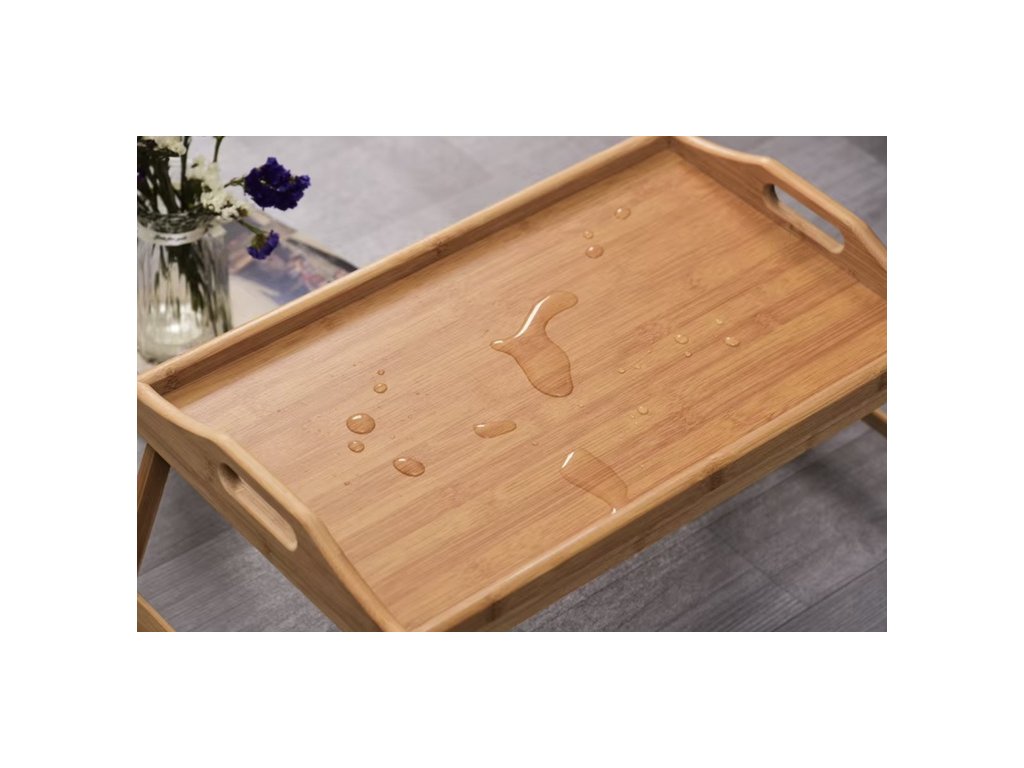 Bambusova miza za zajtrk je dovolj prostorna, da nanjo postavite krožnik, skodelico in jedilni pribor. Zaradi svoje stabilnosti se med uporabo ne maje in zagotavlja varno postrežbo. Površina je gladka in enostavna za vzdrževanje, zato jo lahko preprosto obrišete z vlažno krpo.