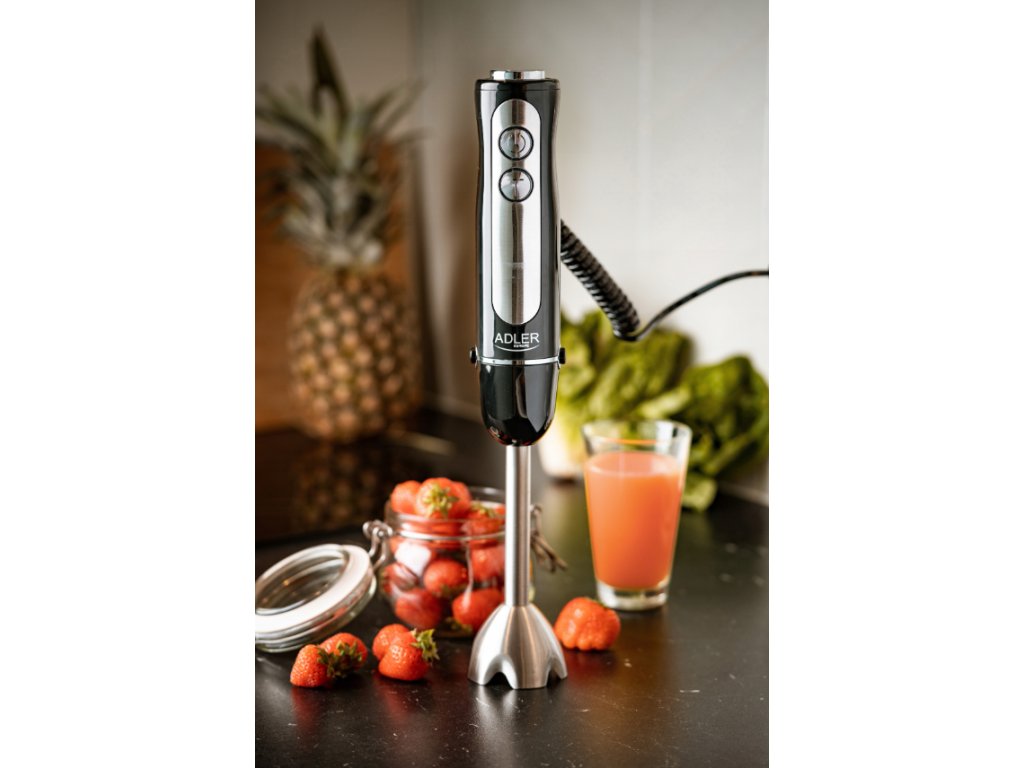Elegantna površina iz nerjavečega jekla zagotavlja ne le dolgo življenjsko dobo, temveč tudi sodoben videz. Mešalni nastavek in rezila iz nerjavečega jekla zagotavljajo higiensko in varno obdelavo sestavin, trpežen plastični pokrov pa ščiti ročni mešalnik pred poškodbami.