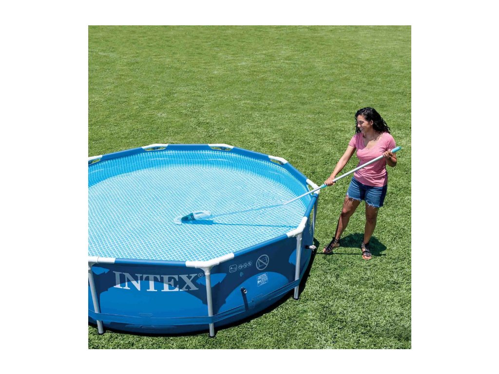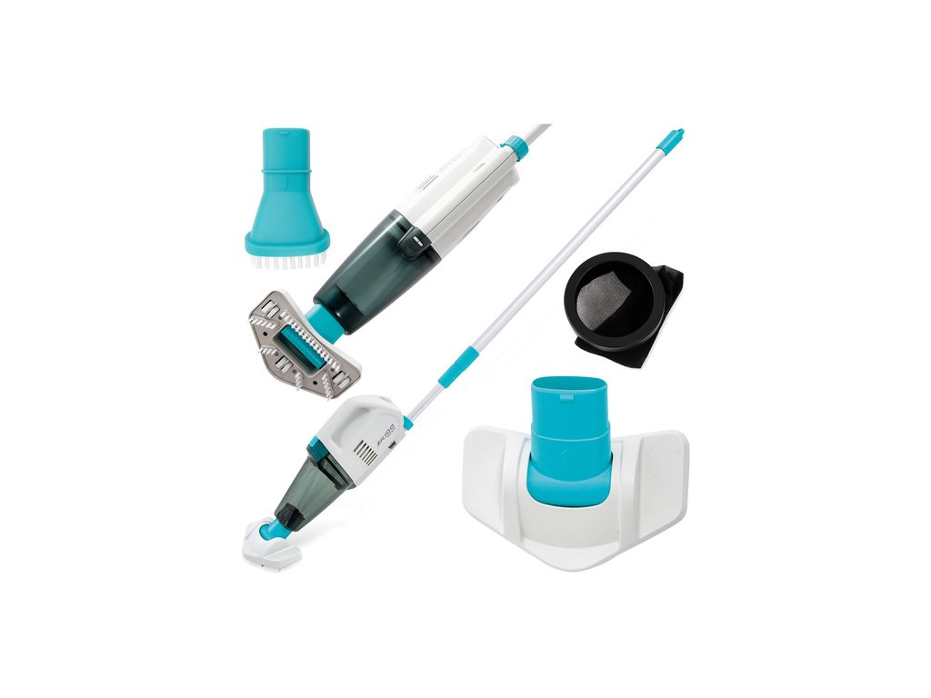 Sesalnik za bazen vas bo navdušil s svojim elegantnim dizajnom. Vendar pa vključuje tudi praktične funkcije, kot je teleskopski ročaj, ki ga lahko prilagodite svojim potrebam, ali dve zamenljivi glavi, ki olajšata vzdrževanje bazena.