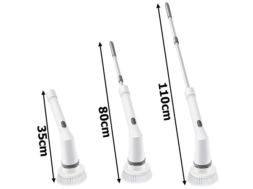 Pozabite na težavno sklanjanje, raztezanje ali uporabo lestve. Električna rotacijska krtača ima teleskopski ročaj, ki ga lahko prilagodite svojim potrebam. Zahvaljujoč njemu lahko enostavno dosežete vogale ali stene.